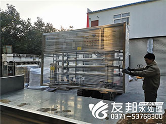 查看詳情+鄭州友邦水處理設(shè)備發(fā)貨日常:新疆喀什12噸反滲透設(shè)備發(fā)貨