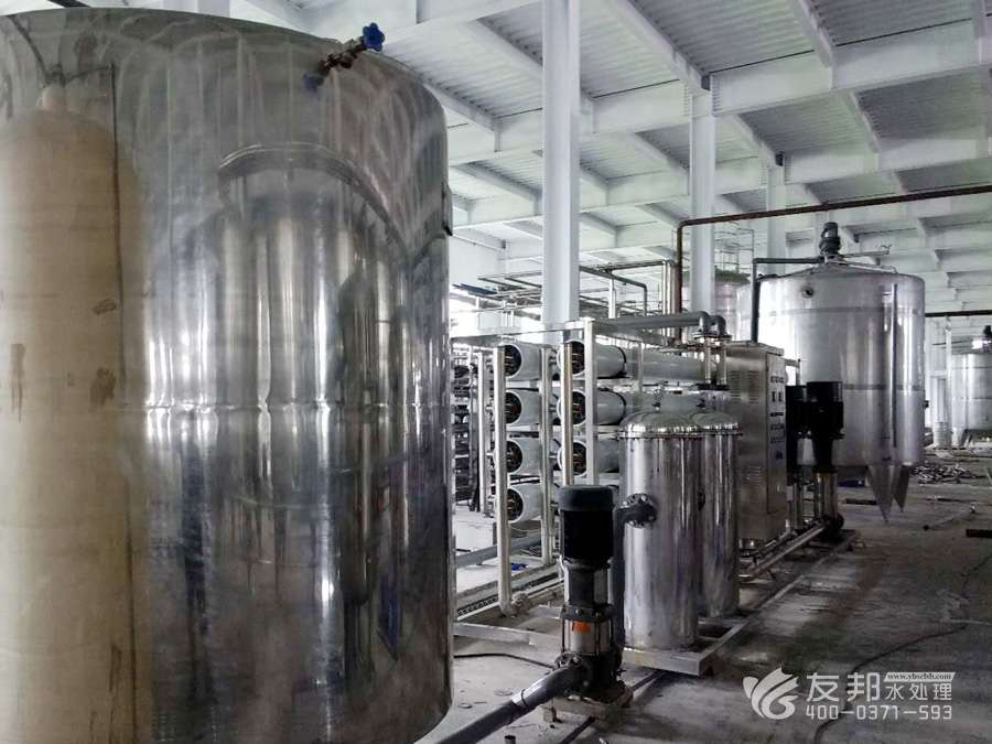 原水→原水加壓泵→多介質(zhì)過濾器→活性炭過濾器→加藥裝置→精密過濾器→第一級反滲透 →PH調(diào)節(jié)→中間水箱→第二級反滲透(反滲透膜表面帶正電荷)→純化水箱→純水泵→陰陽樹脂混床→微孔過濾器→用水點