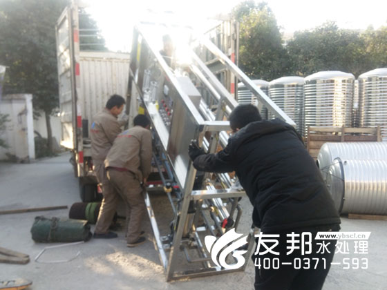 面包廠生產(chǎn)用水水質(zhì)達(dá)到了飲用水衛(wèi)生標(biāo)準(zhǔn),這樣生產(chǎn)出的面包才會(huì)口味香甜醇正,鄭州友邦生產(chǎn)的2噸面包廠純凈水設(shè)備采用了反滲透膜分離技術(shù),保證設(shè)備的出水水質(zhì)衛(wèi)生、新鮮、安全。如圖顯示這套2噸面包廠純凈水設(shè)備正在整車(chē)發(fā)貨。