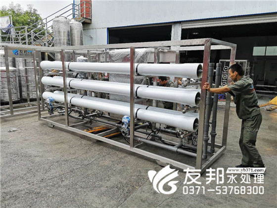 化工行業(yè)對水質(zhì)要求比較嚴格,使用純凈水設備也是越來越普遍,今天在鄭州友邦工廠里這套40噸的反滲透純凈水設備就是發(fā)往湖北用于化工行業(yè)生產(chǎn)用水。