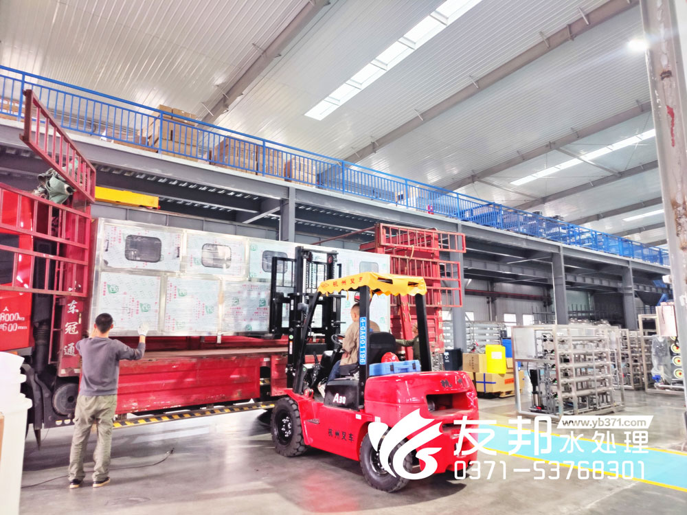 鄭州友邦水處理設(shè)備發(fā)貨日常:新疆喀什12噸反滲透設(shè)備發(fā)貨