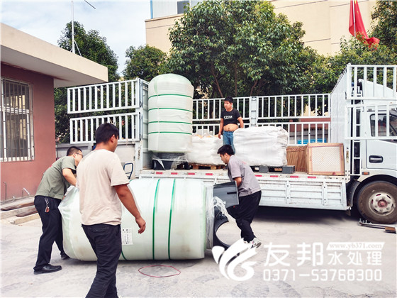 2020-09-07九月份的天氣還是非常熱的,出門還是要戴好口罩。這是我們發(fā)往蘭考的除氟設(shè)備。它采用固定單層床工藝,逆流再生。當(dāng)除氟設(shè)備工作時,源水自上而下通過分子篩層,水中的氟化物不斷被