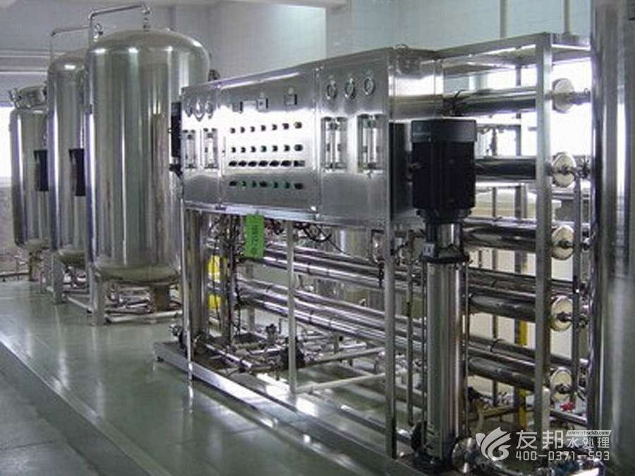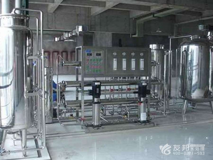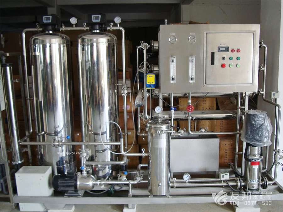 2、預處理→反滲透→中間水箱→水泵→EDI裝置→純化水箱→純水泵→紫外線殺菌器→拋光混床→0.2或0.5μm精密過濾器→用水對象(≥18MΩ.CM)(最新工藝)。