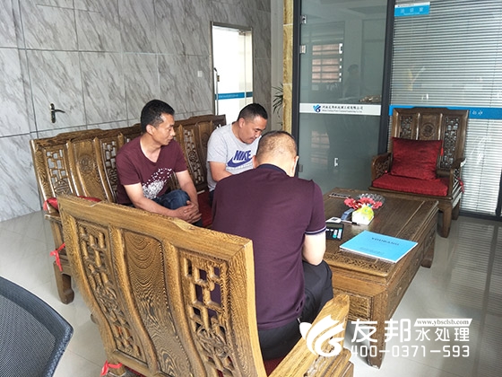 這兩位客戶已經(jīng)不是 一次來到鄭州友邦了,已經(jīng)是鄭州友邦的老客戶之前在友邦訂過設(shè)備。剛剛客戶在樓下已經(jīng)看過友邦的純凈水設(shè)備,對設(shè)備的外型,性能,材質(zhì)及配件都特別滿意。
