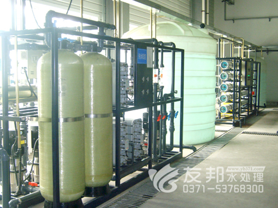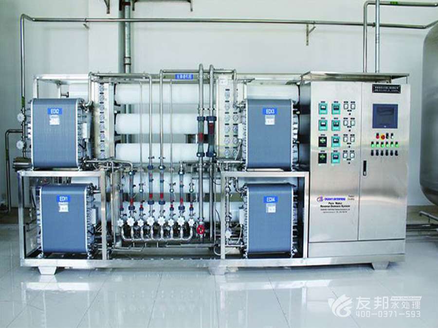 2、預(yù)處理→反滲透→中間水箱→水泵→EDI裝置→純化水箱→純水泵→紫外線殺菌器→拋光樹脂→0.2或0.5μm精密過濾器→用水對(duì)象(≥18MΩ.CM)(最新工藝)